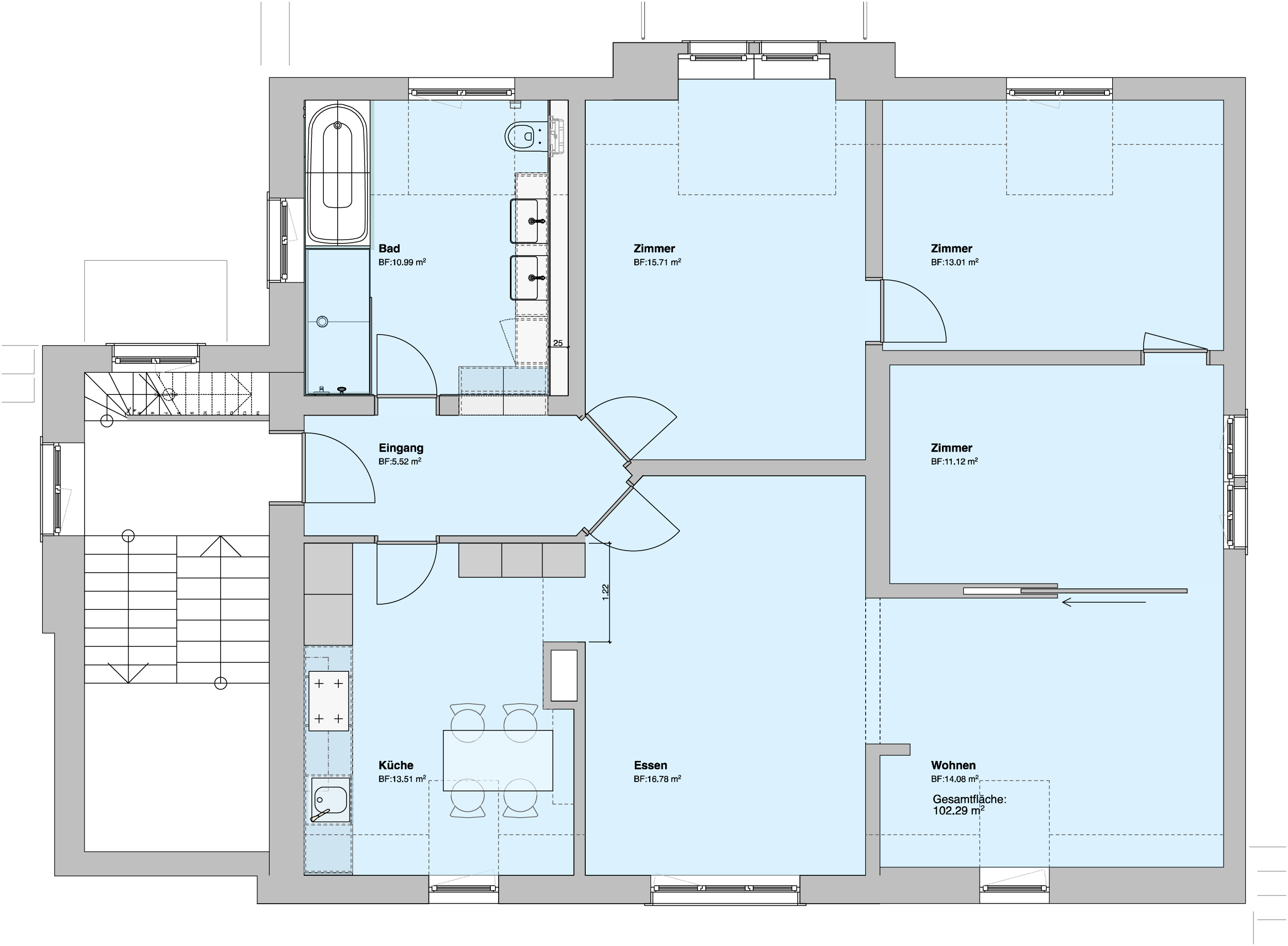 - Eigenes Reduit im Treppenhaus inklusive Waschmaschinenanschluss